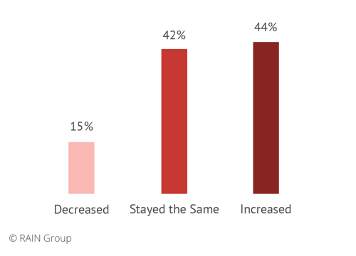 Another alarming trend is that more opportunities are being lost to no decision. Forty-four percent of leaders say the percentage of opportunities lost to no decision has increased compared to only 15% who say it’s decreased.