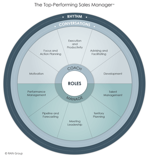 - Playing 10 sales management- and coaching-related roles well. All 10 roles are statistically validated by the research as critical areas where Top-Performing Sales Managers excel compared to other managers.